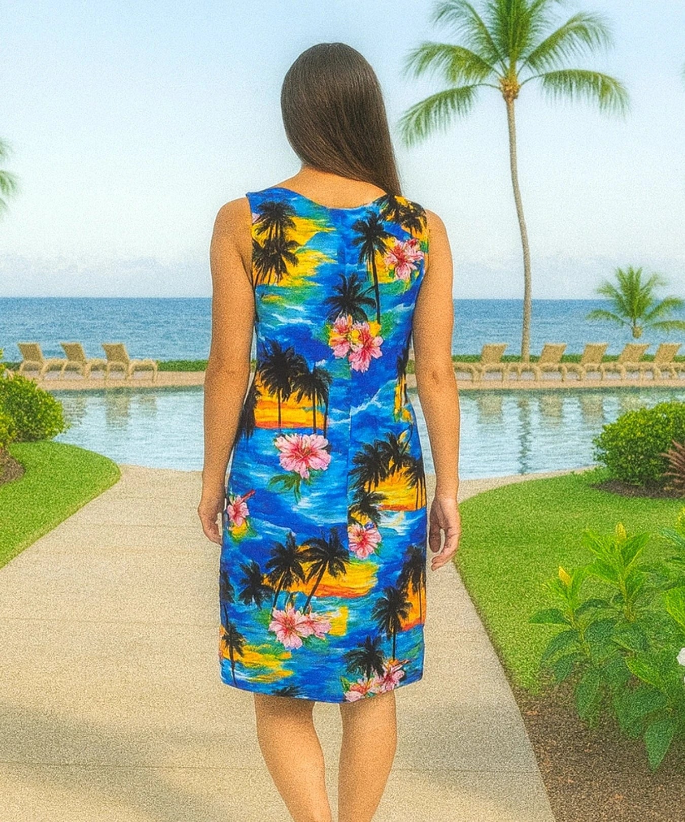 Hawaiian Short Island Sunset Tank Sleeveless Dress