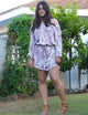 - 3/4 Sleeve Off Shoulder with a Flowing Elastic Waist and Ties